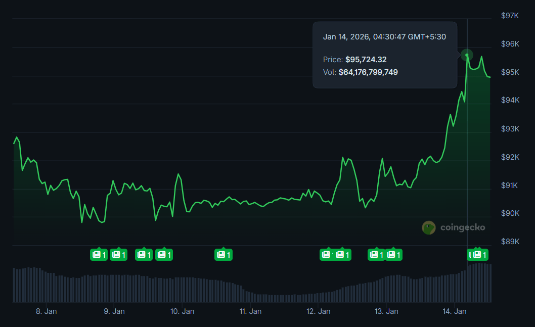 Bitcoin, the leading digital asset often viewed as a store of value like digital gold, climbed past $95,000, its highest in over 50 days, driven by fears of U.S.-Iran conflict and U.S. inflation data holding steady at 2.7% for December 2025.