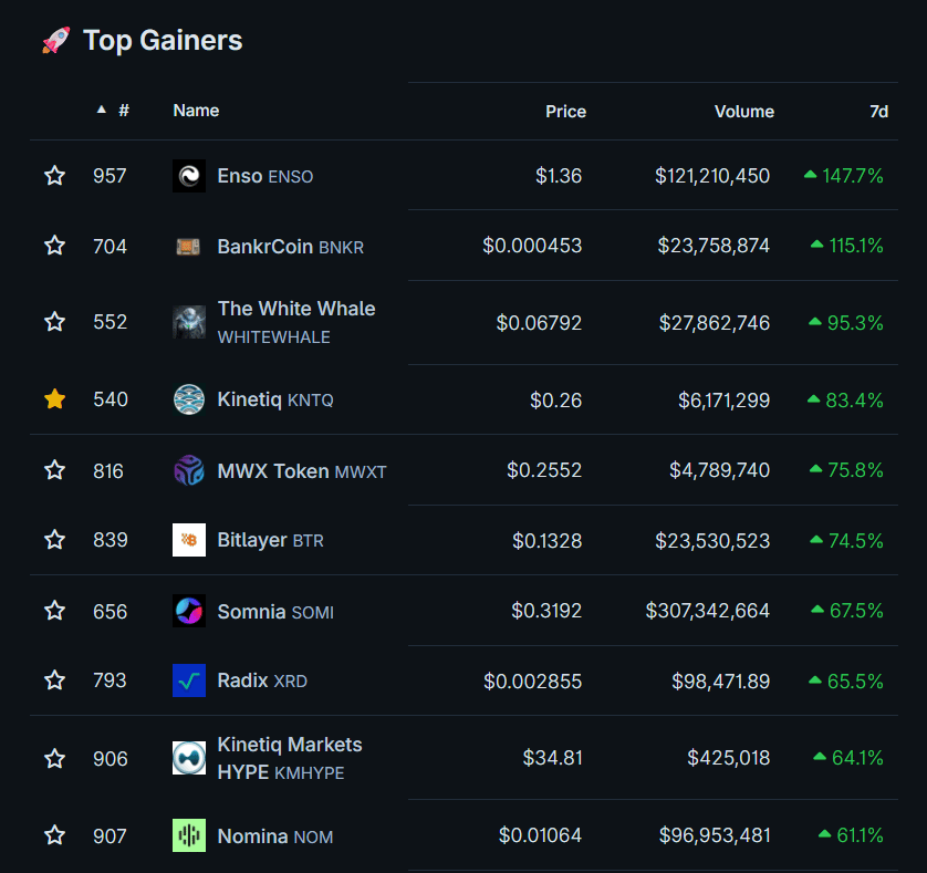 Top 10 Best Performing Tokens in the Last 7 Days: