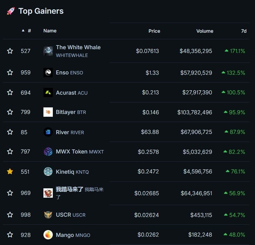Top 10 Best Performing Tokens in the Last 7 Days: