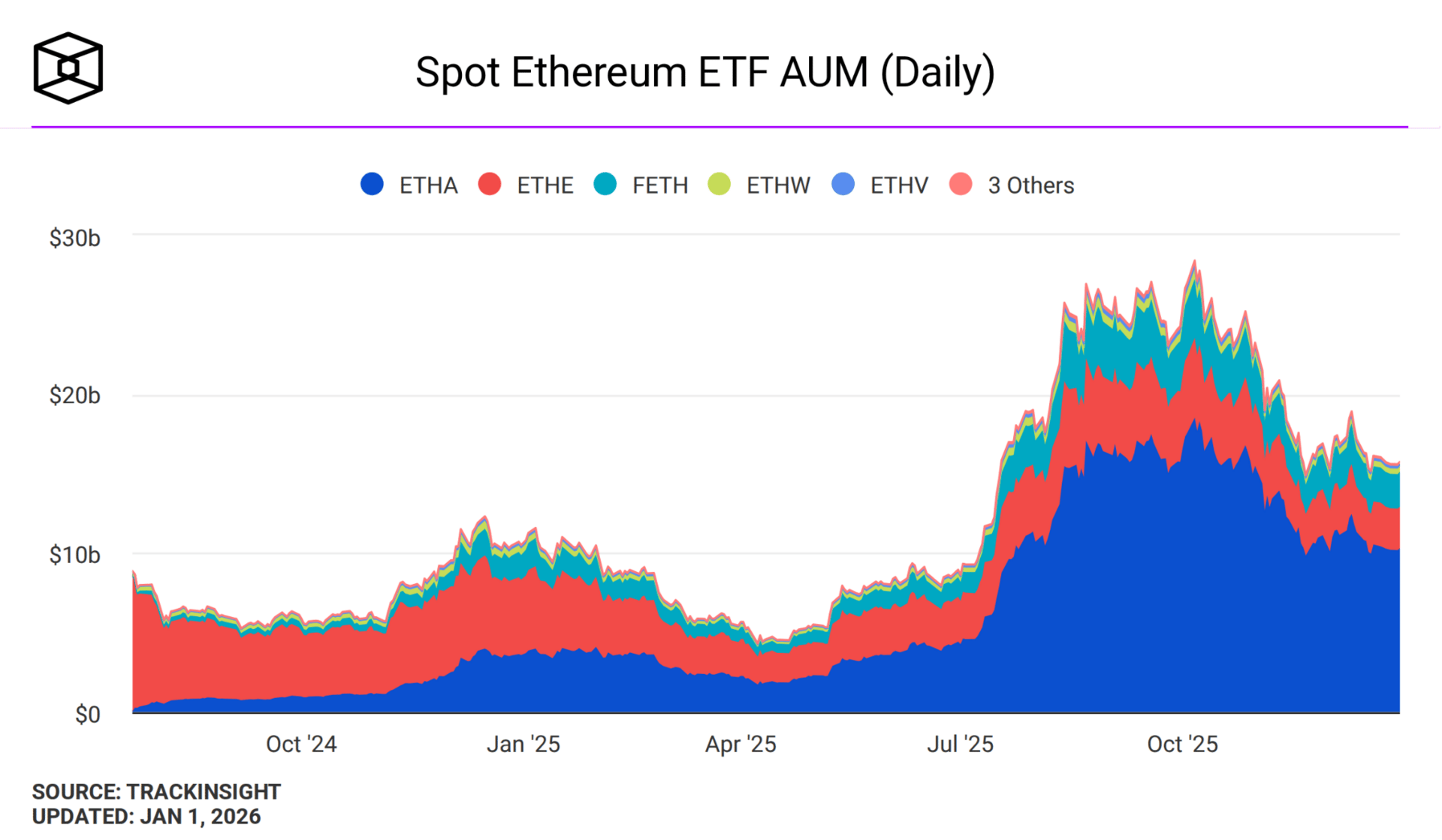 According to data, U.S. spot crypto ETFs recorded net inflows of $31.77 billion in 2025. This included $21.4 billion for Bitcoin ETFs, $9.6 billion for Ether ETFs, and $765 million for Solana ETFs, which launched late in the year.