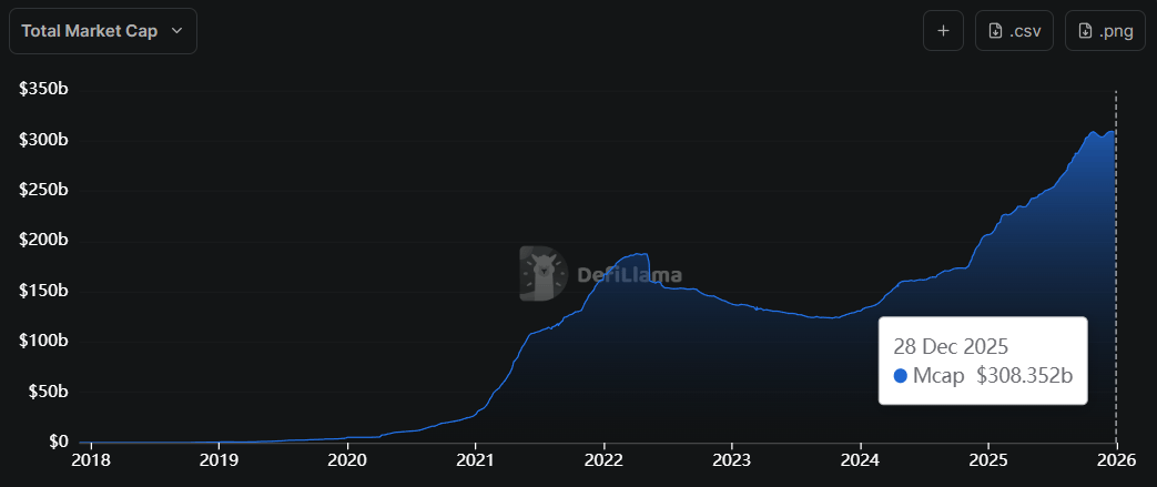 Total Stablecoin Supply: ~$306 Billion (down 0.3% in the last 24 hours)