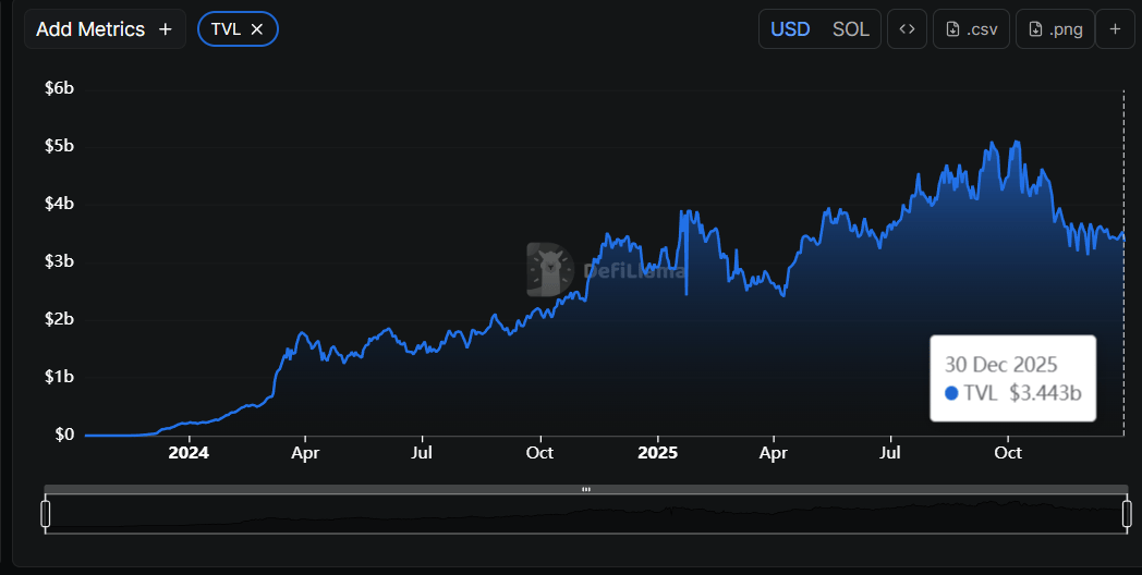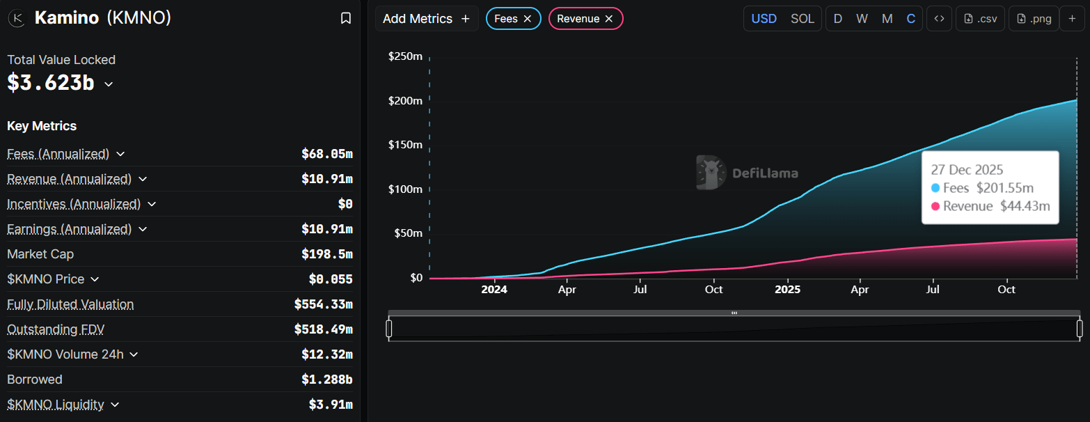 The protocol's growth speaks to its product-market fit. At its peak earlier in 2025, Kamino had over $5.4 billion in assets under management. Even in the current market environment, it maintains a robust $3.4 billion in Total Value Locked (TVL), with $1.2 billion actively borrowed, reflecting strong capital utilization.