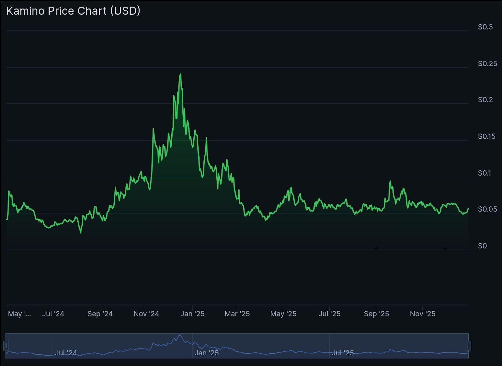 KMNO launched on April 30, 2024. The token has a fixed total supply of 10 billion. As of late December 2025, KMNO trades at approximately $0.05, resulting in a market capitalization of $203 million and a fully diluted valuation (FDV) of $566 million.