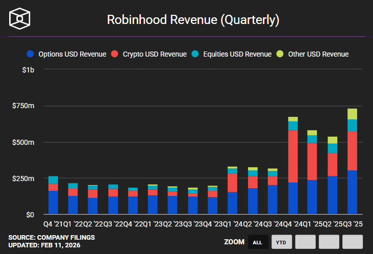 Notably, "other" revenues, including prediction markets via Kalshi, surged 375% to $147 million. CEO Vlad Tenev reaffirmed the "Financial SuperApp" vision, emphasizing diversification beyond volatile crypto.