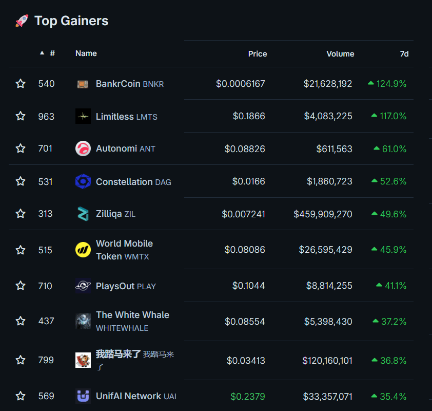 Top 10 Best Performing Tokens in the Last 7 Days: