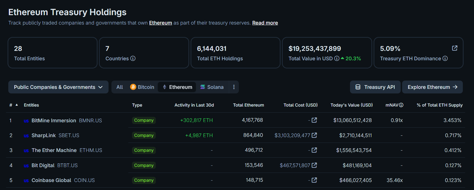 5. Bitmine Bulks Up ETH Treasury to 4.17M Tokens